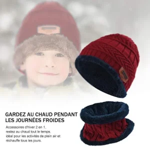 Ensemble Hiver Bonnet avec Écharpe en Tricot