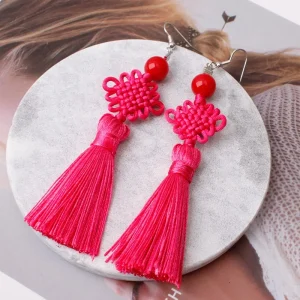 Boucle d’oreille japonais noeud en soie tressé