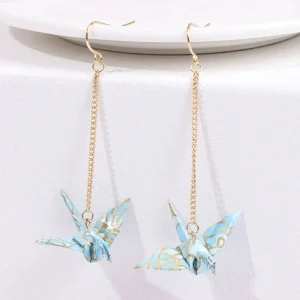 Boucle d’oreille japonais pendante Grue origami