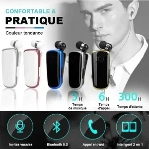 Oreillette Bluetooth à clip pour collier