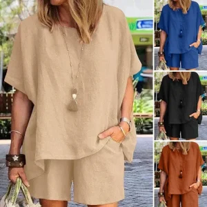 Costume de couleur unie ample et confortable (T-shirt+ short)
