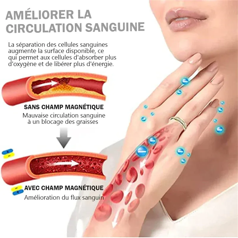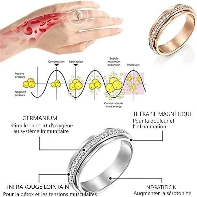 Les produits magnétiques typiques utilisent soit un champ magnétique pour pénétrer les plus petits aimants, soit font en sorte que des pôles similaires se repoussent, créant un espace mort entre les aimants. L’anneau rotatif en moissanite thermogénique utilise des orientations polaires nord-sud alternées pour maximiser le flux de champ magnétique, tout en libérant des charges électromagnétiques pour éliminer les blocages autour du corps et restaurer le flux naturel d’énergie.