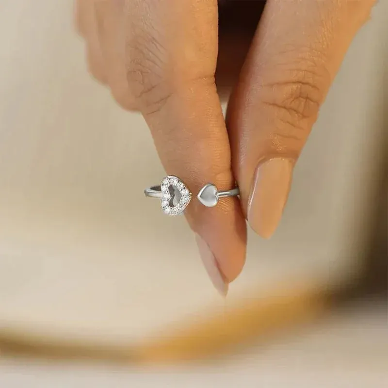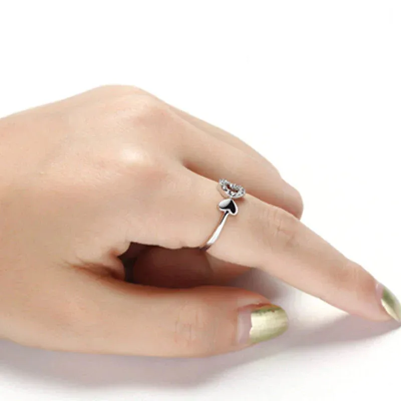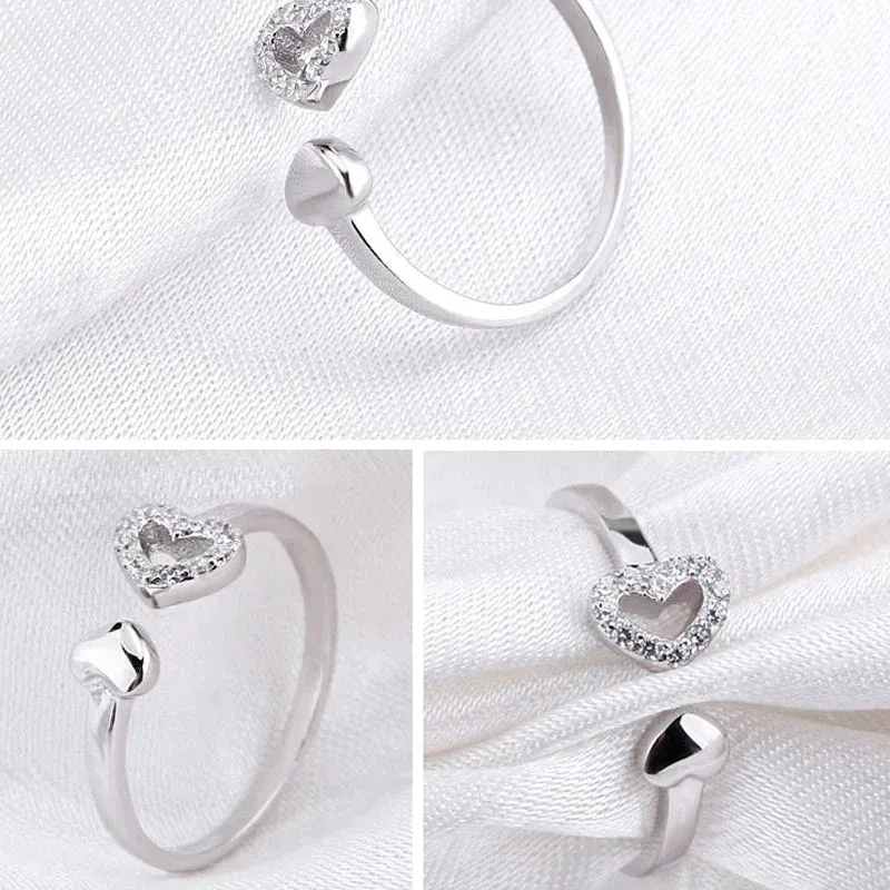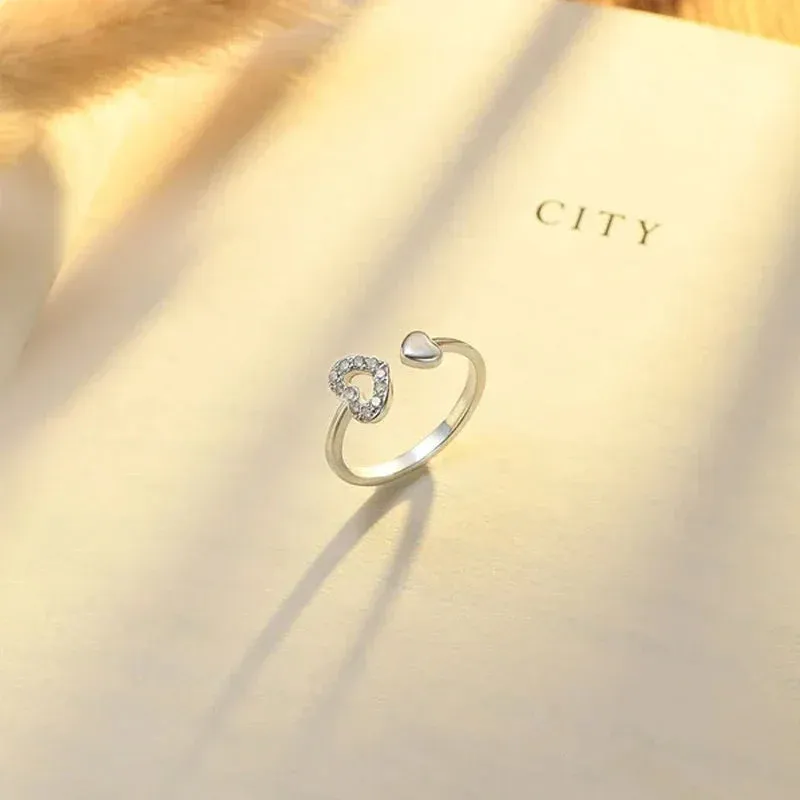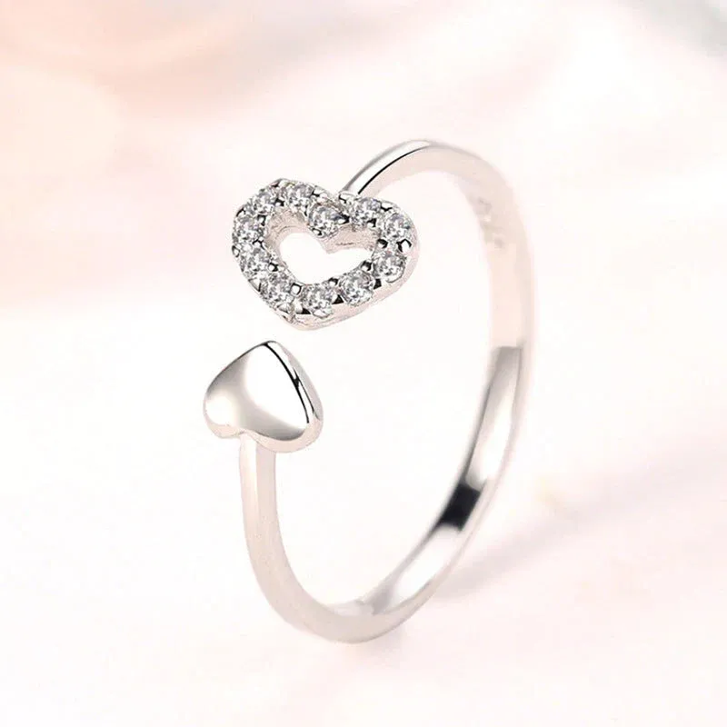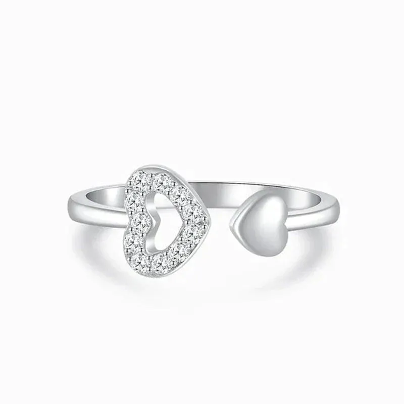 Bague ouvrante en argent massif double coeur d’amour creux asymétrique. La petite bague mignonne et délicate est ouverte et ajustable.