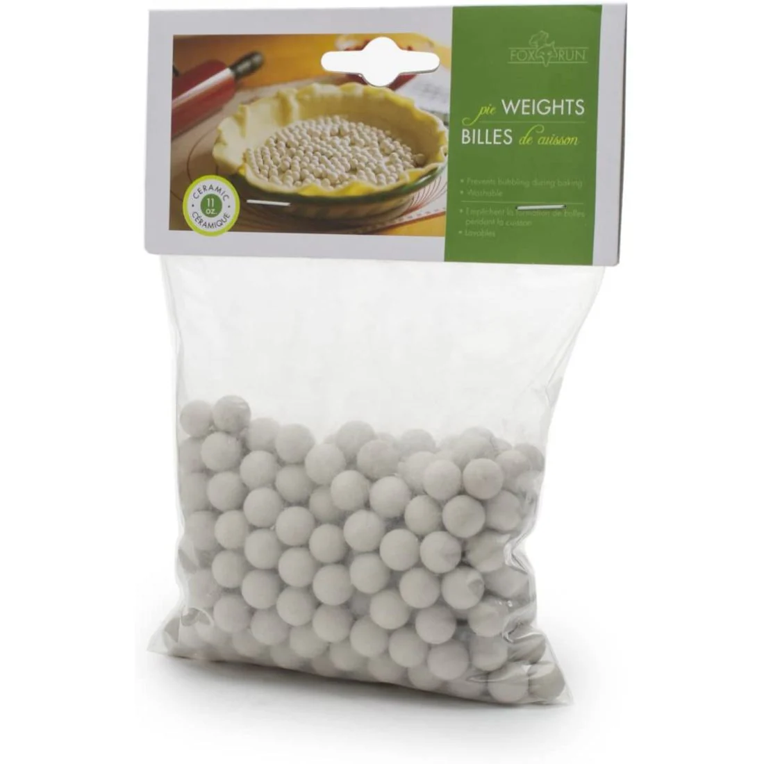 - Les poids de cuisson en grès réutilisables vont au four jusqu’à 446 degrés