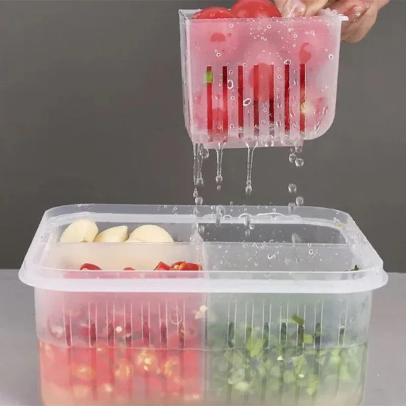 J’adore ces choses, elles me facilitent la vie. La boîte a un couvercle qui peut être divisé de 4 façons pour séparer les 4 compartiments pour un nettoyage facile des légumes.