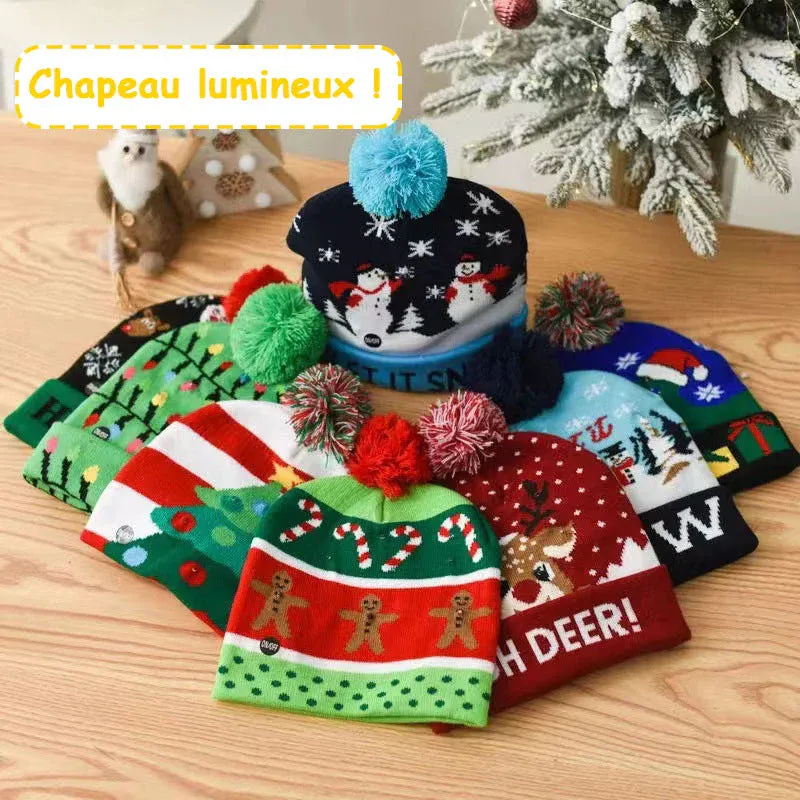 - 1 pièces OU 3 pièces OU 6 pièces * Bonnet tricoté de Noël avec Lumière LED