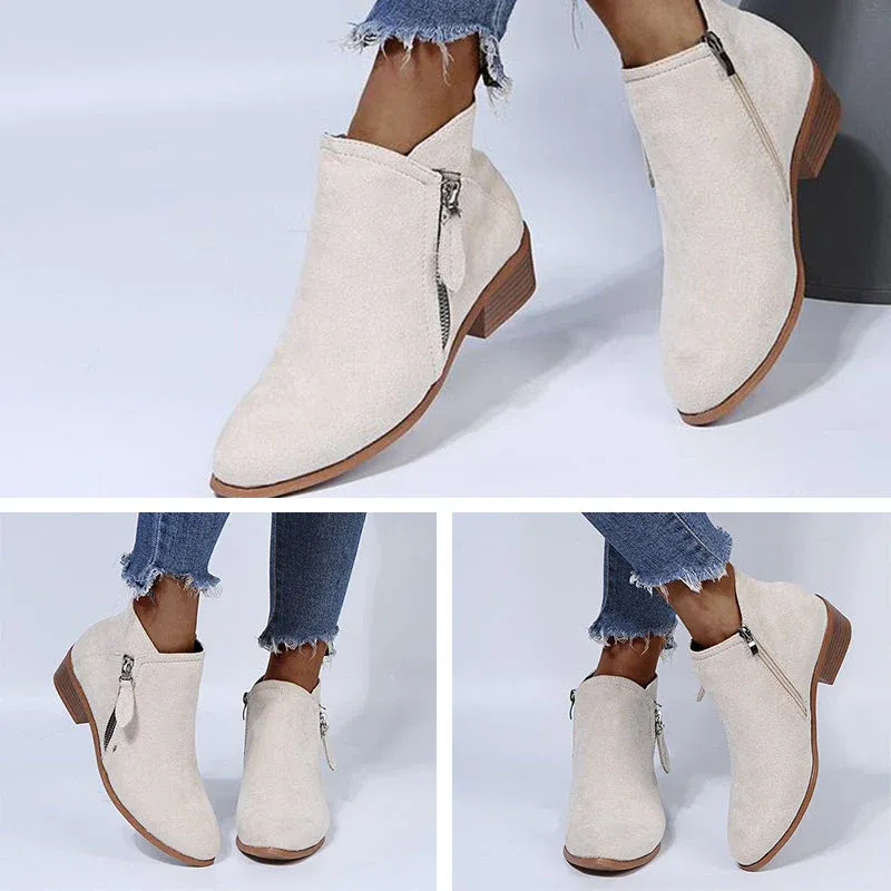 - 1 paire* Bottines à talon épais et fermeture éclair latérale pour femmes