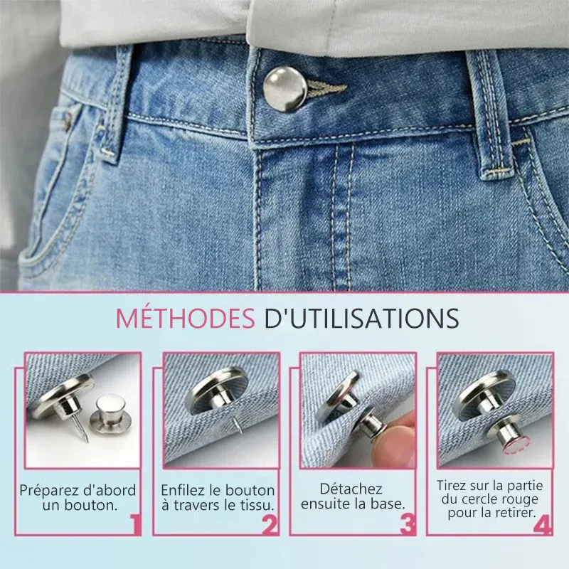Il est facile d’ajuster la taille des jeans en quelques secondes. Il fonctionne avec n’importe quel tissu.