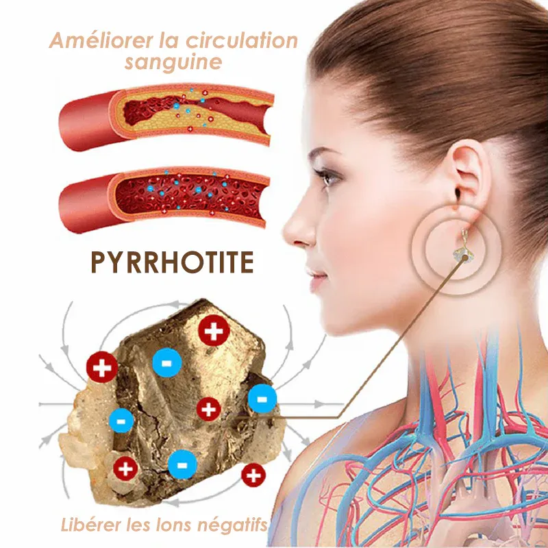 - La pyrrhotite est une magnétite magnétique. Ces boucles d’oreilles de thérapie magnétique présentent un design unique en pyrrhotite qui exploite la puissance de la thérapie magnétique. La thérapie magnétique réaligne les charges électromagnétiques dans les cellules du corps pour favoriser l’auto-guérison, ce qui profite au système lymphatique. Le champ magnétique guérit en alcalinisant le tissu et en libérant de l’oxygène de l’état lié à l’état moléculaire. Il réduit également de manière significative le gonflement des ganglions lymphatiques et réduit l’excès de liquide lymphatique de 60%.