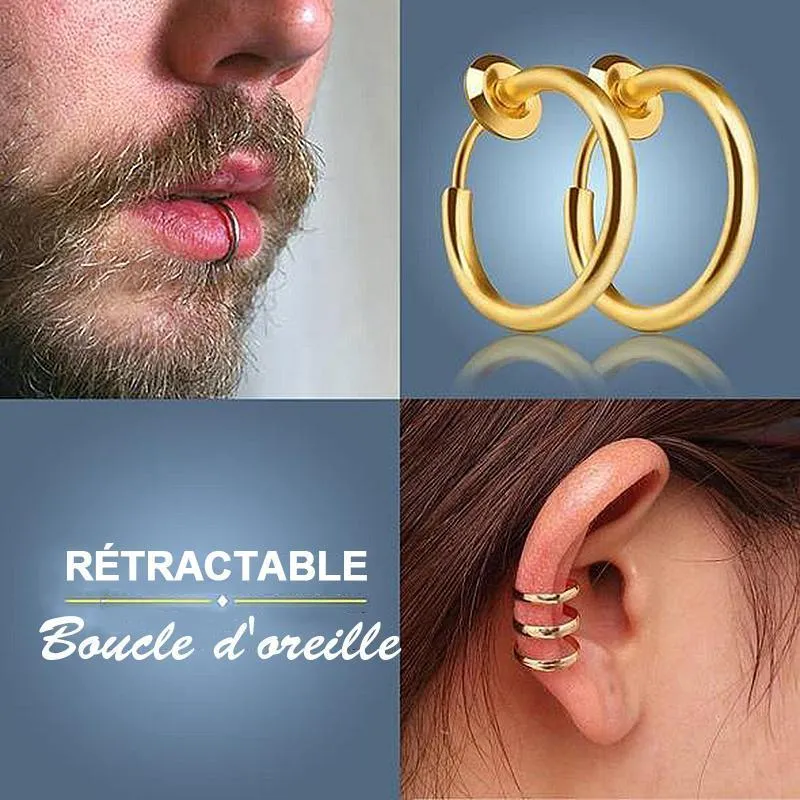 Voulez-vous porter des boucles d’oreilles sans piercing? Nos clips d’oreille télescopiques en acier inoxydable peuvent réaliser vos rêves. Ce cerceau est astucieusement conçu avec un fermoir rétractable, vous pouvez donc porter cet anneau sur vos oreilles, votre nez ou vos lèvres sans aucun piercing.