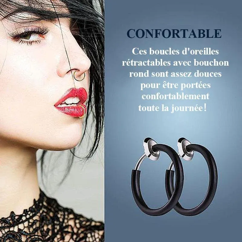 Expérience confortable: contrairement aux clips d’oreille qui causent de la douleur après un long port, ce cerceau rétractable avec un bouchon rond est très doux et peut être porté confortablement toute la journée.