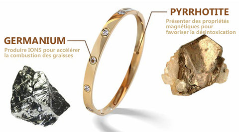 - Ce bracelet détox minéral exploite la puissance des minéraux de pyrrhotite et de germanium pour offrir des avantages potentiels au corps. Grâce à ces minéraux puissants, le bracelet vise à stimuler les capacités naturelles d’auto-guérison du corps, en particulier le système lymphatique. De plus, en stimulant la circulation sanguine et le métabolisme, il aide à perdre du poids et offre une approche unique de la santé globale.