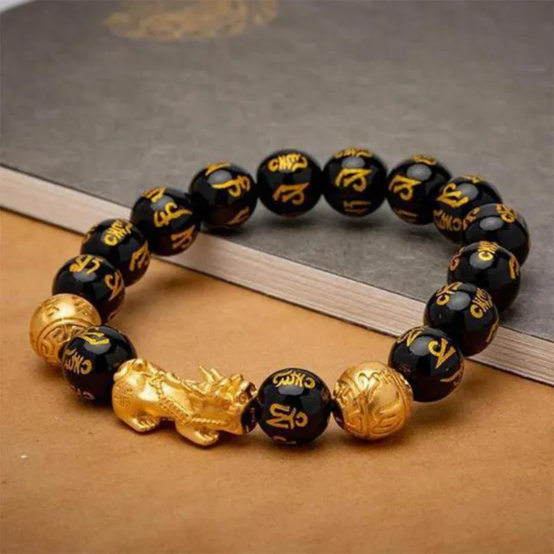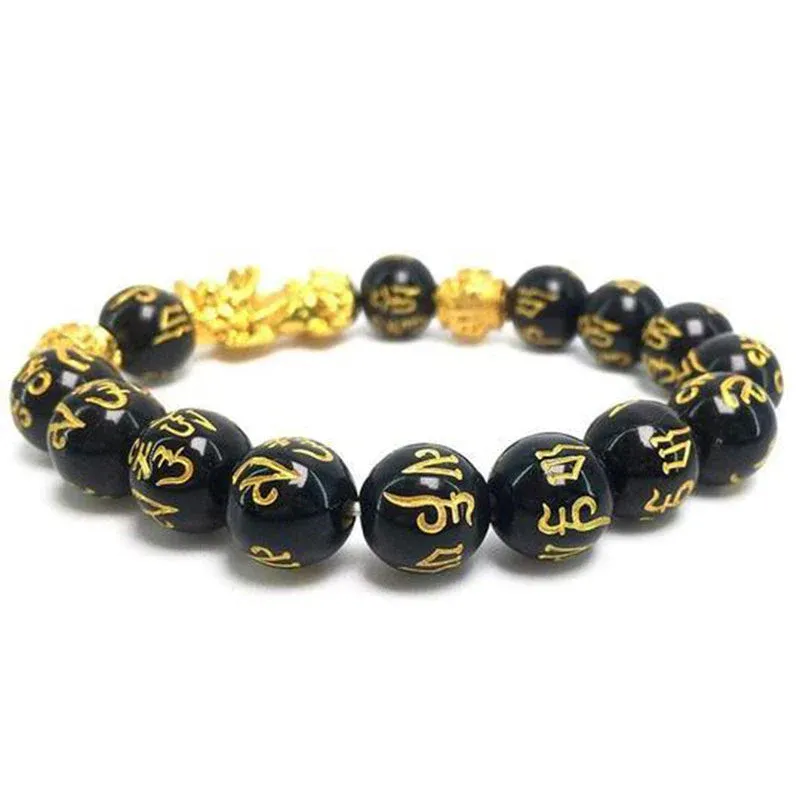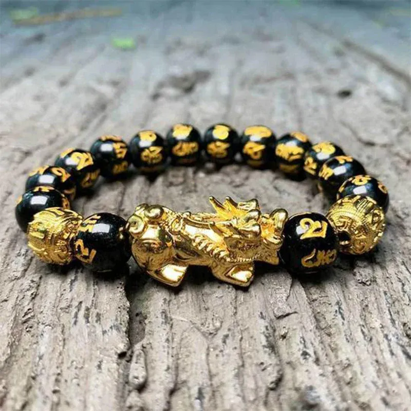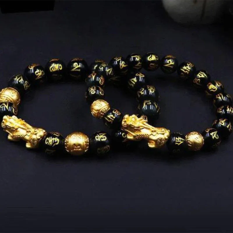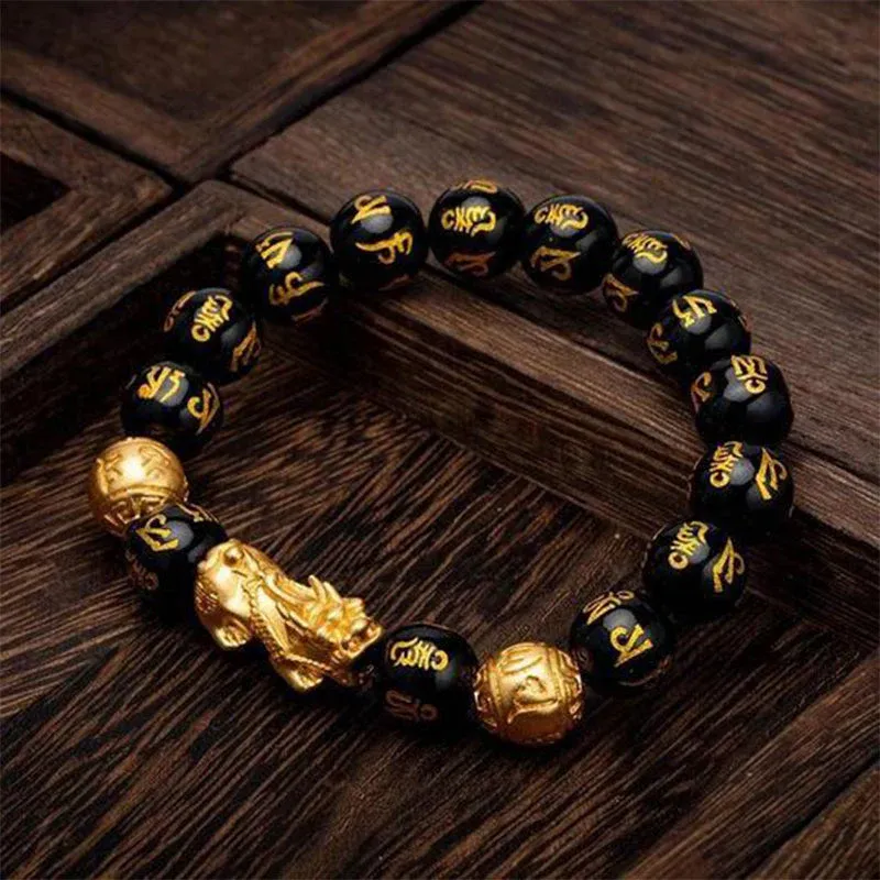 - 1 pièce OU 2 pièces OU 3 pièces* Bracelet de perle Feng Shui obsidienne Pixiu