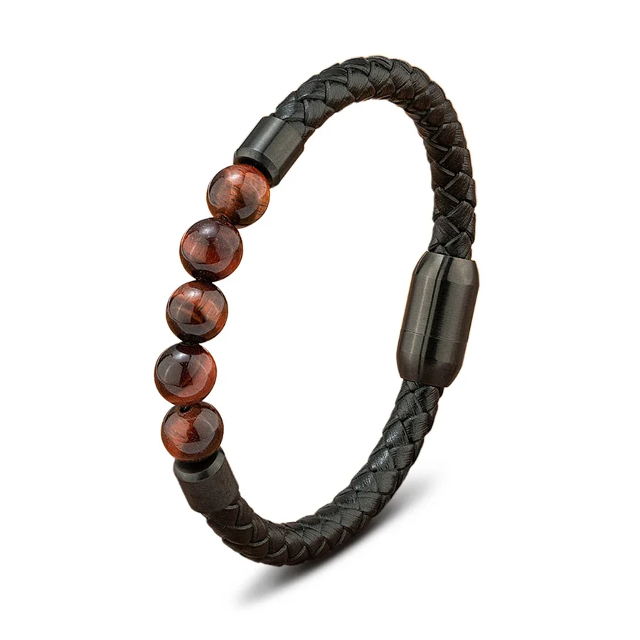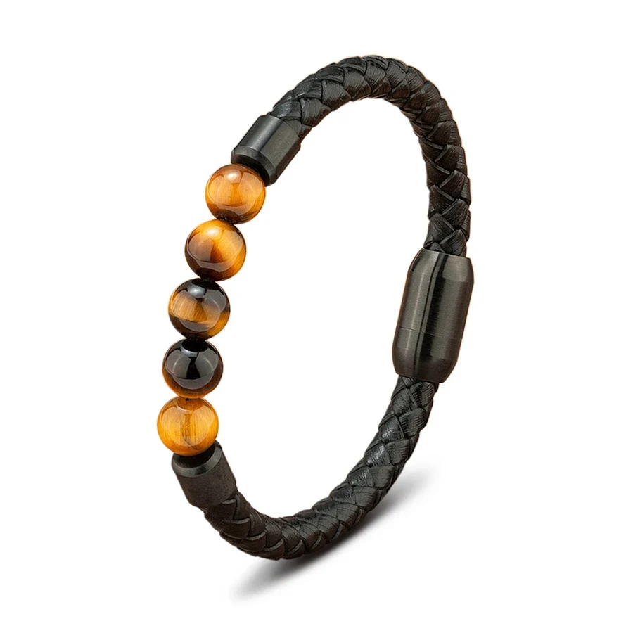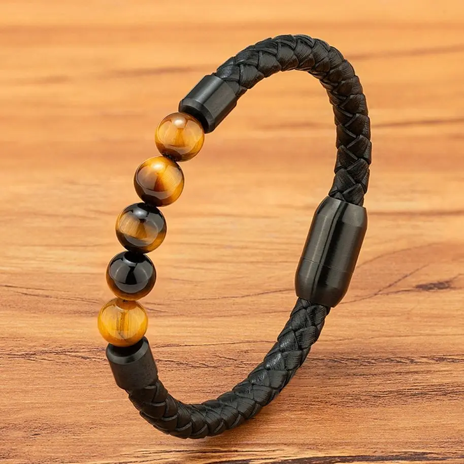 Confectionné en cuir véritable avec tressage artisanal, ce modèle ajustable s’adapte facilement au poignet. La pierre centrale en œil de tigre apporte force et protection. Parfait pour un usage quotidien avec une touche symbolique et élégante.