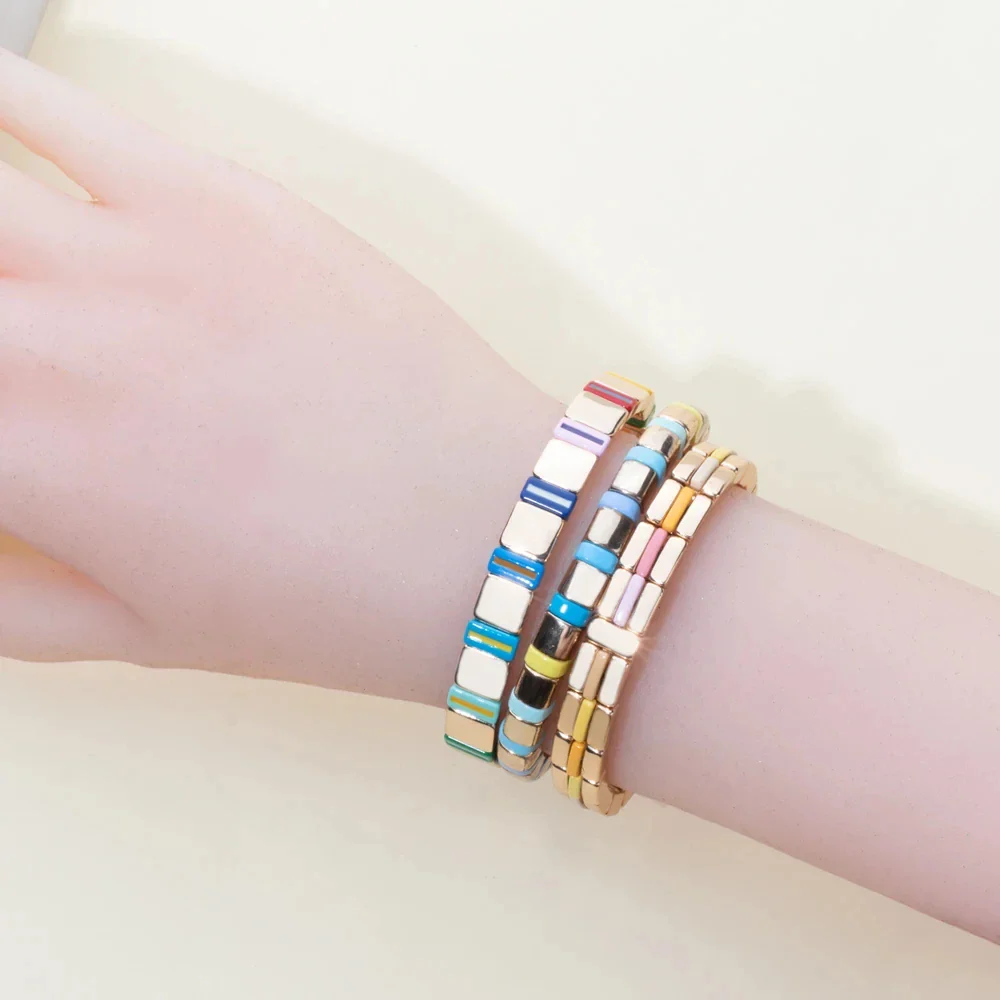 Ce bracelet raffinĂ©, confectionnĂ© avec des perles multiformes de haute qualitĂ©, apporte une touche d’élĂ©gance Ă votre poignet. Chaque perle est soigneusement tissĂ©e Ă la main, crĂ©ant une pièce originale qui capte la lumière sous tous les angles. Sa composition dĂ©licate et colorĂ©e vous plonge dans un univers d’artisanat subtil, parfait pour sublimer vos tenues avec une allure moderne et intemporelle.