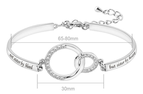 Ce bracelet gravé « NOT SISTER BY BLOOD BUT SISTER BY HEART » , il représente l’amitié au-delà de l’affection familiale. Au milieu du bracelet, se trouvent deux anneaux reliés incrustés de strass étincelants, représentant l’amitié durable et indestructible entre vous et votre sœur.