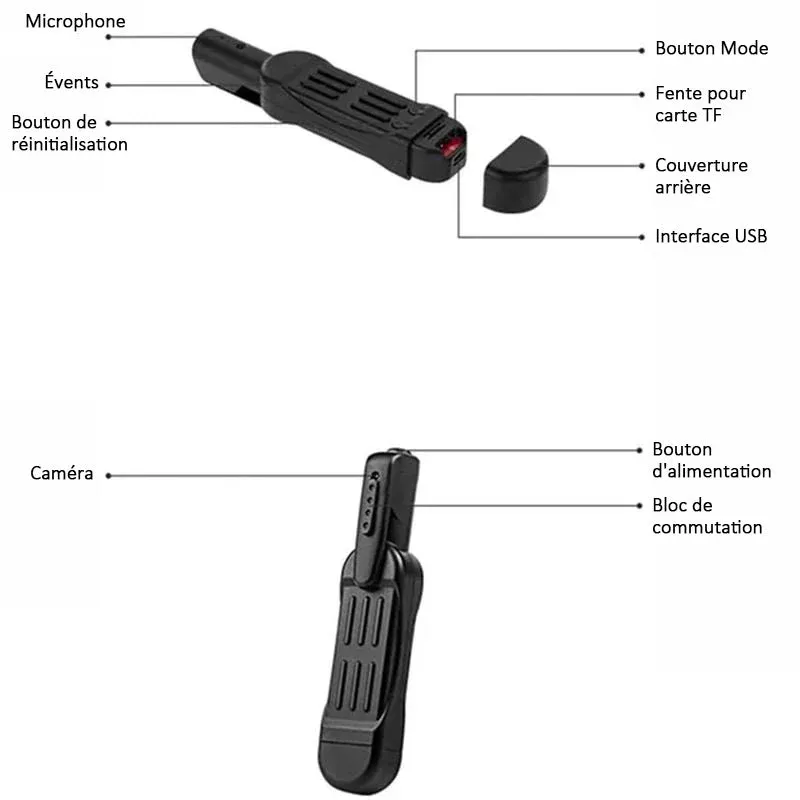 - ✅ Vous pouvez l’accrocher à votre poche, sac à dos, sac à main, etc. pour enregistrer des vidéos en qualité HD 1080p.