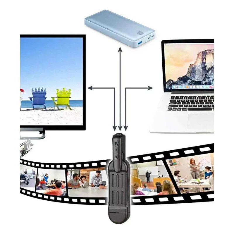 La caméra dispose d’un capteur haute résolution et peut enregistrer discrètement en 1080p à 30 images par seconde afin que vous puissiez capturer chaque détail. Il est utile lors de réunions, d’entretiens ou de sécurité au bureau et à la maison.