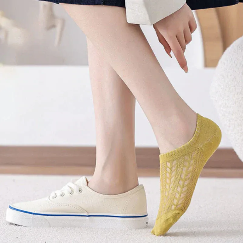 - Conception en maille creuse, légère et respirante. Le bas a une conception en silicone antidérapante pour empêcher les chaussettes de glisser de vos pieds.