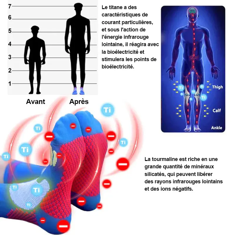 - 1 paire OU 3 paires* Chaussettes réhaussantes d’ions de titane Schorl infrarouge lointain