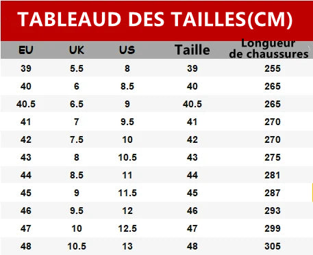 Chaque paire de chaussures pèse environ 335 grammes, parfaite pour votre travail, vos promenades ou vos voyages. Semelle en caoutchouc antidérapante, elle est légère, résistante à l’usure, souple et absorbant les chocs.