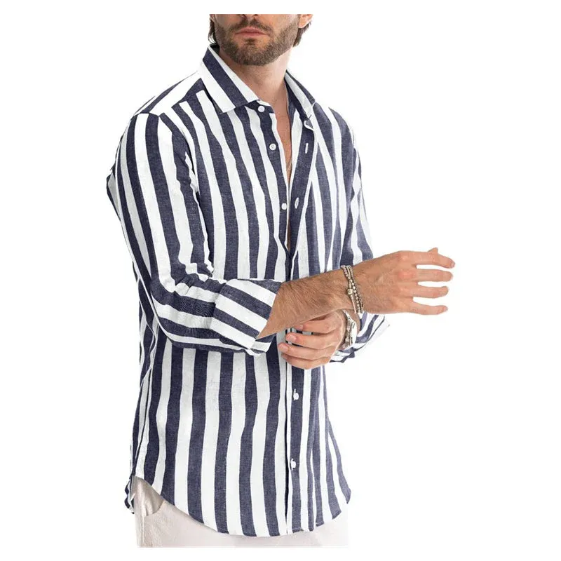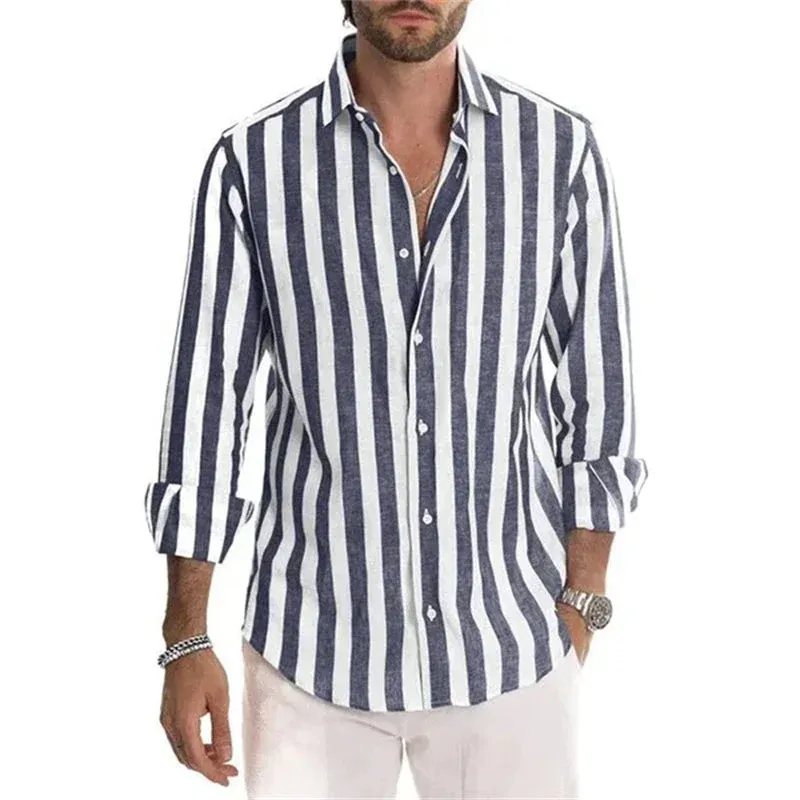 - 1* Chemise à rayures en coton et lin pour hommes