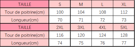 *En raison d’erreurs de mesure manuelles, si vous voulez une sensation lâche, vous pouvez choisir la taille plus grande que d’habitude.