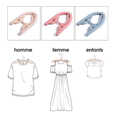 Ces cintres peuvent être repliés pour tenir dans de petites poches de sacs de voyage et de bagages. Avec un profil mince et compact qui vous aide à économiser un espace précieux dans votre garde-robe. Gain de place et pas de problème du tout. -