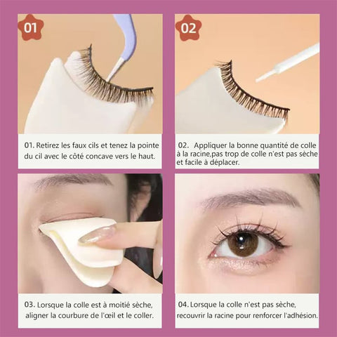 - 3. Appliquez la colle à cils sur la partie plate des cils. 4.