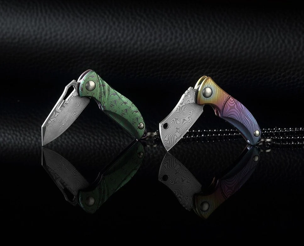 Idéal pour vos aventures en foret, le couteau pliant damas japonais est en format mini pour prendre le moins de place possible !