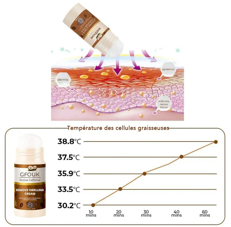 - La crème anti-gonflement à la caféine active agit en favorisant le drainage lymphatique. La crème à la caféine peut aider à réduire l’accumulation de liquide et de déchets dans la zone touchée, ce qui peut réduire l’enflure. On pense également que la caféine a des propriétés antioxydantes qui peuvent aider à réduire l’inflammation et à protéger la peau contre les dommages.