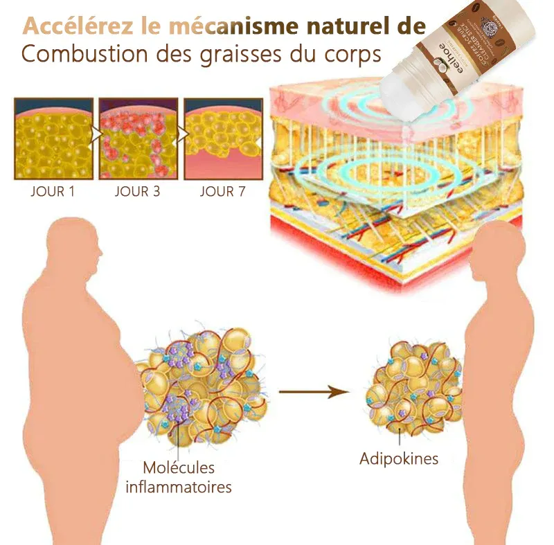 - La crème anti-gonflement à la caféine active est un stimulant qui augmente votre taux métabolique, c’est-à-dire le nombre de calories que votre corps brûle pendant qu’il se repose. La recherche montre que la crème anti-gonflement à la caféine active peut améliorer la thermogenèse, le processus par lequel votre corps génère de la chaleur et brûle des calories, entraînant une légère augmentation de la dépense énergétique. Il augmente la décomposition et l’utilisation des graisses stockées comme source d’énergie dans le corps. C’est le processus par lequel les molécules de graisse sont décomposées en acides gras et converties en énergie utilisable par une série de réactions chimiques.