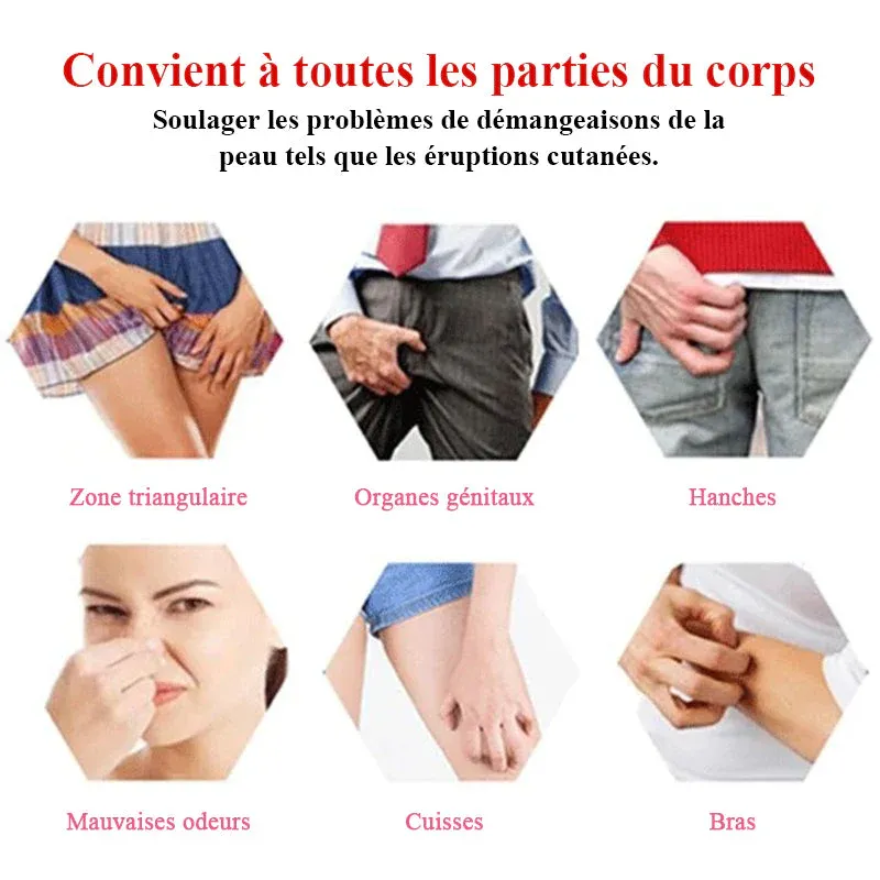 La formule naturelle à base de plantes soulage profondément les démangeaisons. Résoudre les allergies, l’eczéma, la dermatite et autres irritations cutanées. Débarrassez-vous des démangeaisons privées embarrassantes.