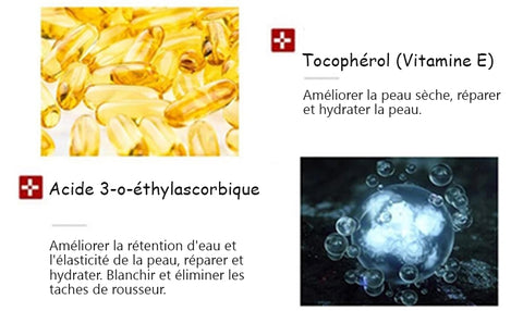 - Ingrédients principaux: Acide 3-o-éthyl ascorbique, tocophérol (vitamine E), niacinamide.