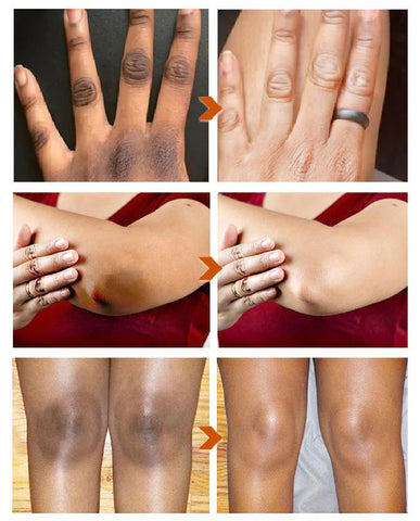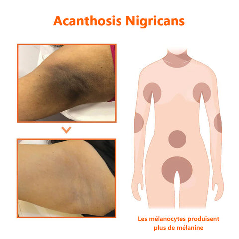 - La crème éclaircissante pour la peau foncée est spécialement formulée pour soulager l’hyperpigmentation causée par l’acanthosis nigricans, une affection cutanée qui produit des décolorations sombres et veloutées dans les plis et les rides de la peau.