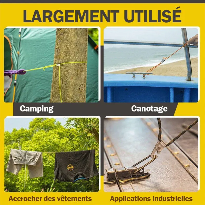 Système de réa, structure autobloquante très solide. Passez la corde à travers le crochet, tirez fermement et elle se verrouillera automatiquement. Pas de nœuds ! Serrez la corde facilement !