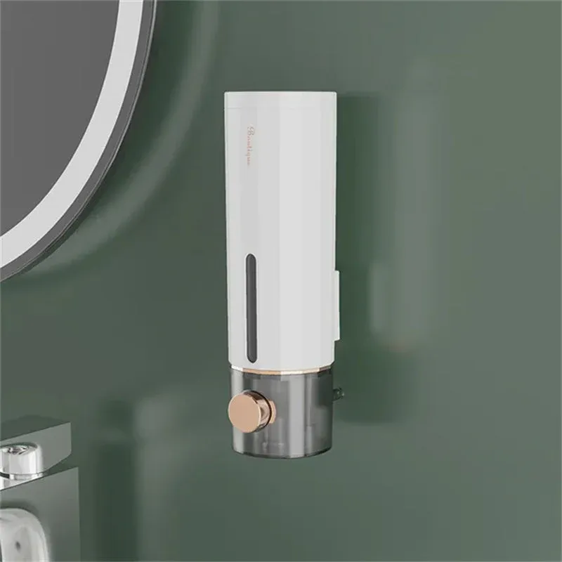 Boutons plaqués or, pas faciles à rouiller. Principe du vide, appuyez pour obtenir du liquide. Grande capacité, peut contenir 450 ml de liquide. Crochet sans trace, aucun dommage au mur.
