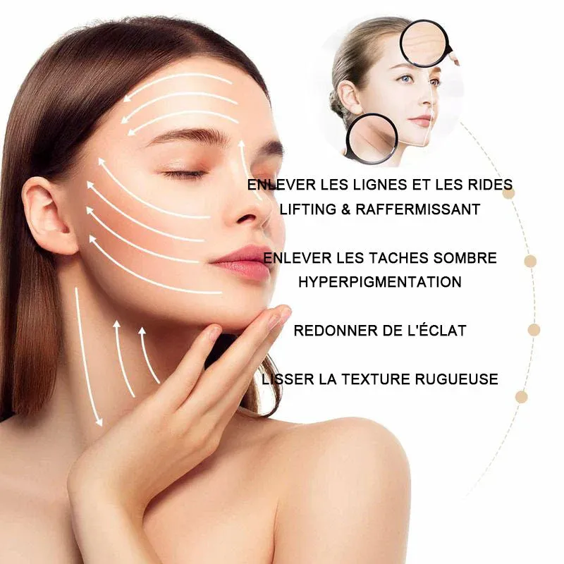 Il lifte et raffermit la peau et élimine les rides et ridules. Il enlève les taches brunes et l’hyperpigmentation.