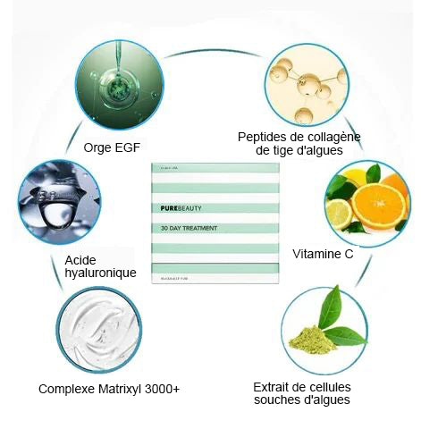 - Ingrédients: EGF d’orge, peptide, extrait de thé vert, complexe Matrixyl 3000+, hexapeptide, acide hyaluronique, vitamine C, vitamine E, glycérine.