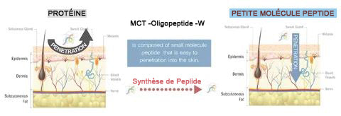 - Les peptides sont en fait de petites protéines qui pénètrent dans les couches externes de la peau. Ainsi, au lieu de rester à la surface de la peau, ils s’enfoncent plus profondément.
