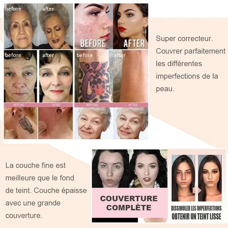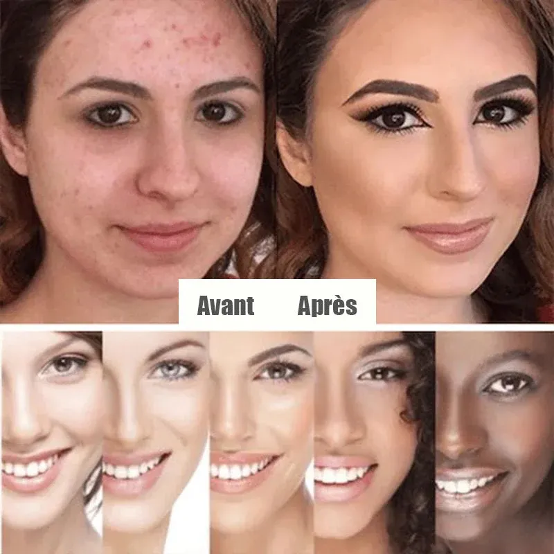 Les marques d’acné, les pores, les cicatrices, les tatouages sont couverts.