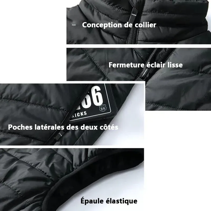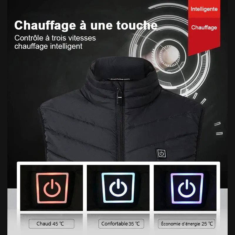 Ce gilet chauffant offre chaleur et confort par temps froid. Avec des piles, il dure jusqu’à 15 heures. Il améliore la circulation sanguine et prévient la fatigue et les douleurs musculaires. Il est durable, imperméable et résistant au vent.