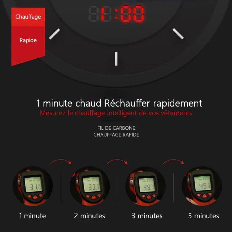 Le coussin chauffant en fibre de carbone génère et capte la chaleur à l’arrière du noyau principal (chauffage instantané).