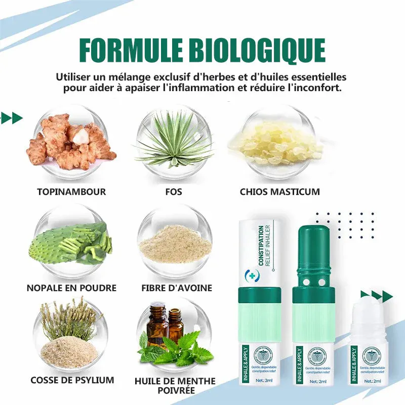 - L’inhalateur de soulagement de la constipation est un produit innovant pour un soulagement rapide et efficace de la constipation. Nos inhalateurs contiennent un mélange unique d’ingrédients naturels pour favoriser la santé des selles et soulager les symptômes de la constipation.