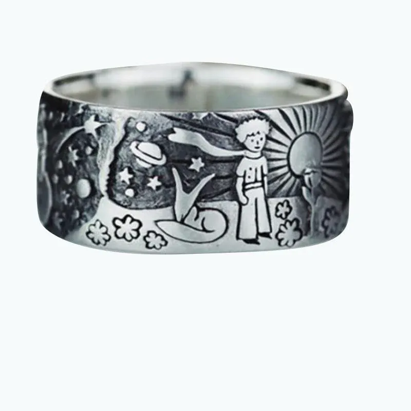 Un design unique: bague créative sculpté, inspiré par le petit prince. La riche gravure sur la bague apporte une texture luxueuse et met en valeur votre charme mode.
