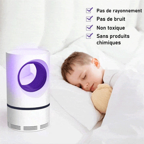 Lampe à moustiques USB à tourbillon violet, tueur de moustiques photocatalytique. Une conception d’abat-jour cachée sûre, pas d’éblouissement dans l’environnement sombre.