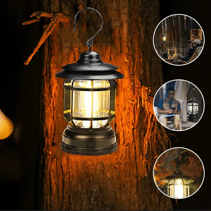 Lampe de camping LED rétro en matériau imperméable + abat-jour en métal. Peut être utilisé sous la pluie. Il est également résistant aux chocs et au glissement. Ils sont très durables.
