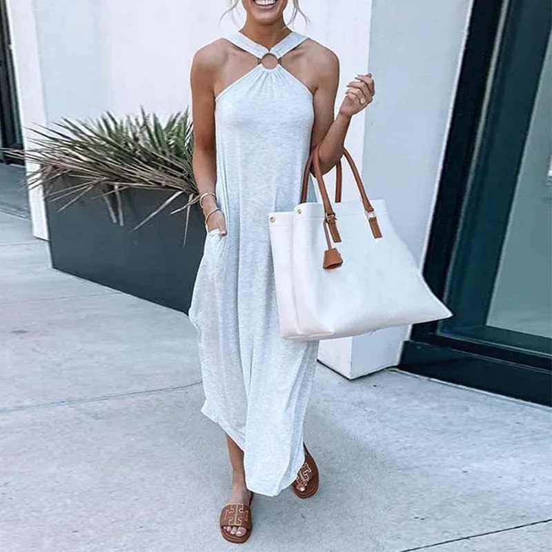 Cette belle robe maxi unie est faite pour les nuits d’été relaxantes ! Doté d’une couleur chinée intemporelle, vous ne pouvez pas vous tromper avec ce style classique ! Vous pouvez même nouer l’ourlet du bas pour un joli détail noué !