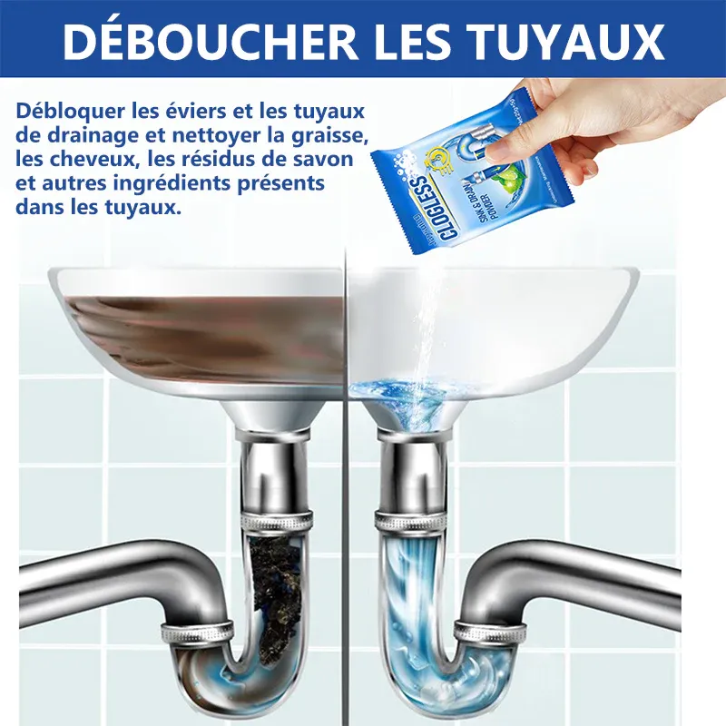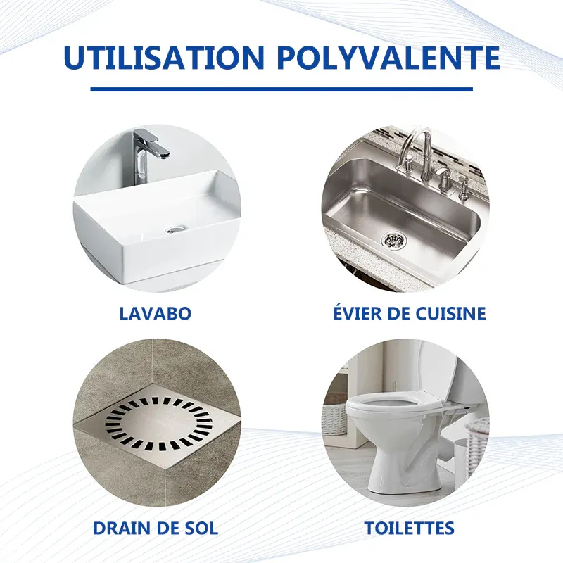Le nettoyant pour éviers et canalisations a une formule non acide et biodégradable compatible avec une variété de types de tuyaux, y compris le métal et le plastique. Ils conviennent aux éviers de cuisine, aux baignoires de salle de bain, aux douches, aux siphons de sol, aux urinoirs, aux siphons de camping-car et plus encore.