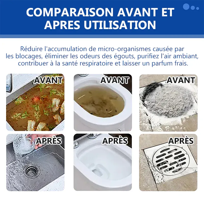 Le nettoyant pour éviers et canalisations est soigneusement conçu pour ne pas produire d’odeurs fortes, de fumées irritantes ou d’éclaboussures lorsqu’il est mélangé à de l’eau chaude. Ils peuvent être utilisés en toute sécurité dans les maisons, les écoles, les hôpitaux, les cafétérias et les restaurants. Utilisez ce nettoyant pour canalisations de douche régulièrement chaque mois pour garder vos tuyaux propres et éviter les obstructions. -